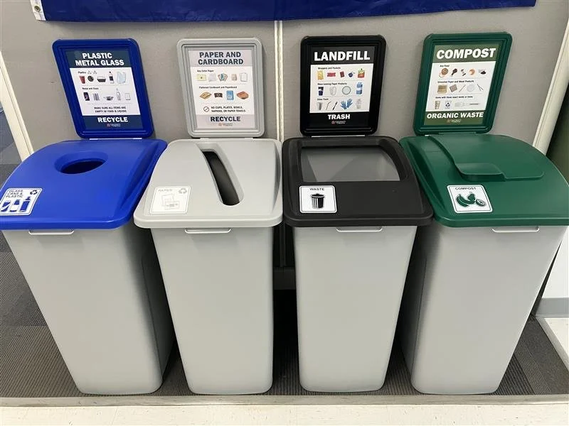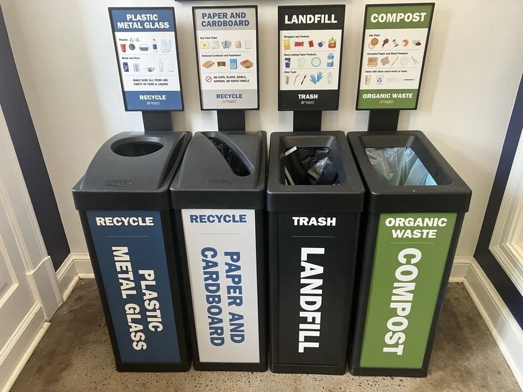 My most impactful project for the Office for Sustainability was my work on the comprehensive redesign of UVA's waste sorting signage system—a critical infrastructure project that directly supports the university's 2030 sustainability goals. The challenge was to improve waste diversion accuracy across campus by helping students, faculty, and staff correctly sort their waste into four categories: Plastic/Metal/Glass, Paper/Cardboard, Landfill and Compost.