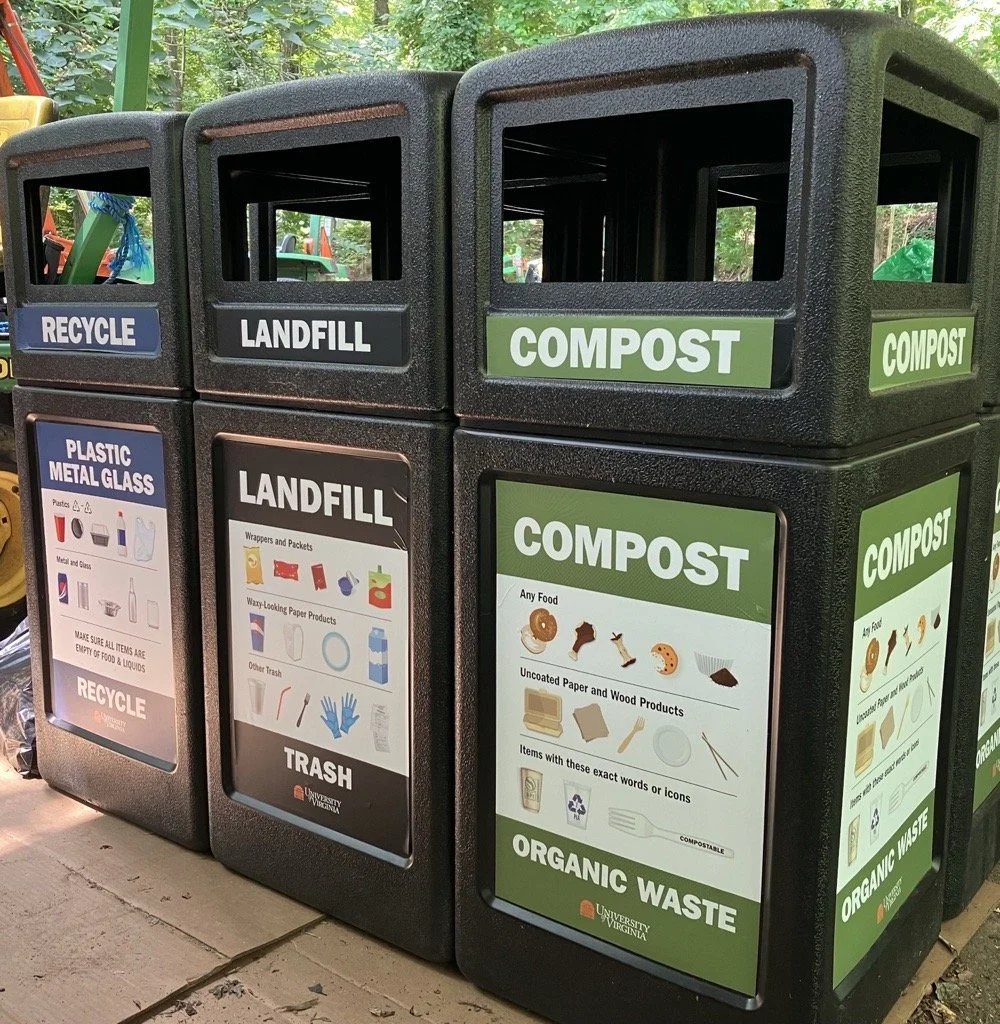 Waste signage at UVA had become mismatched over the years, resulting in a patchwork of communication. The confusing signage system was failing to provide clear guidance, resulting in contamination that undermined recycling and composting efforts. Through extensive collaboration with the sustainability team and incorporating direct feedback from student users, I restructured the visual approach to waste communication.